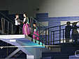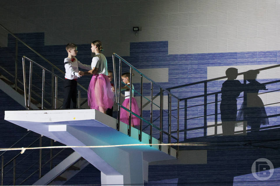 Над бассейном девчонки в пышных розовых юбочках и галантно одетые юноши станцевали вальс. Сначала музыка была загадочной и спокойной, но постепенно мелодия набирала обороты. В кульминации спортсмены устроили взрыв эмоции – красиво погрузились в воду с высоты.