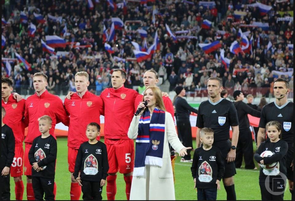 На стадионе "Волгоград Арена" Гимн России перед стартовым свистком исполнила Наталья Подольская.