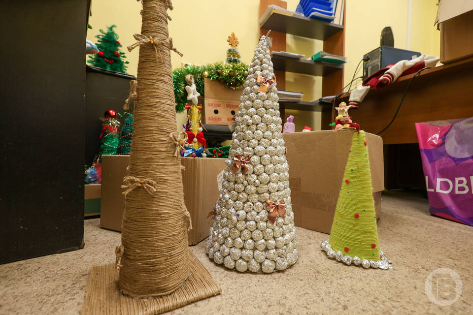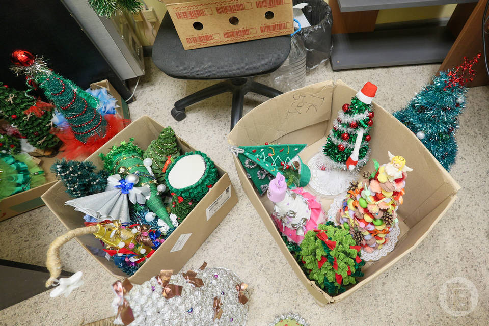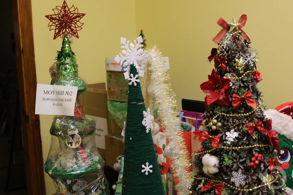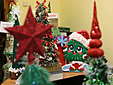 А еще в рамках акции подразделениям военнослужащих и в госпиталь были переданы …елочки! Просто космически-фантастические елочки, сделанные руками ребятишек: из перьев, из шариков, из фольги, с шапочкой сверху, из велюра, из шнура… Просто посмотрите фото – это великолепно! Елочки делали школьники в рамках акции городского департамента по образованию. И огромное им спасибо: сколько счастливых эмоций вызовет эта красота, скрасившая суровый фронтовой быт.